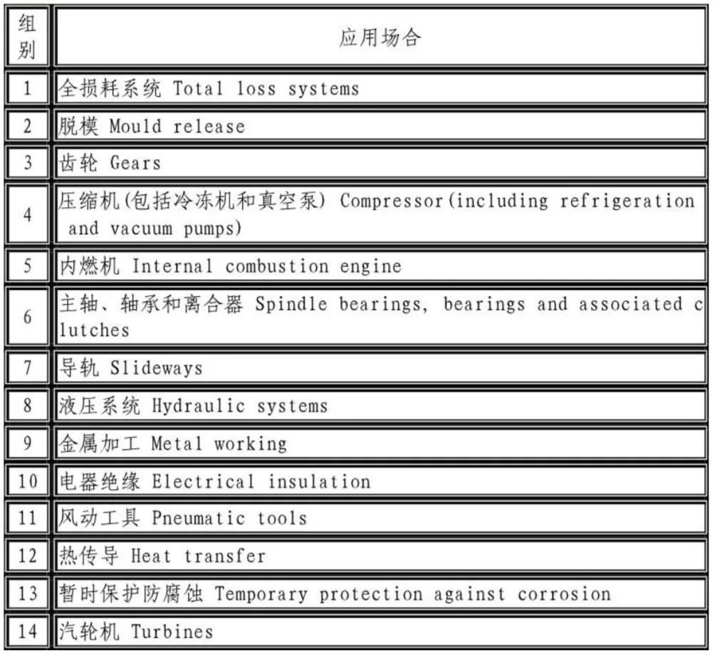 國際標(biāo)準(zhǔn)化組織(ISO)制定了ISO6743/0潤滑劑、工業(yè)潤滑油及有關(guān)產(chǎn)品(L類)分類標(biāo)準(zhǔn)。中國等效采用ISO6743/0標(biāo)準(zhǔn)。制定了國家標(biāo)準(zhǔn)GB7631。潤滑劑和有關(guān)產(chǎn)品(L類)的分類。GB7631.1根據(jù)應(yīng)用場合將潤滑劑和相應(yīng)產(chǎn)品分為以下各組。GB7631.1潤滑劑和有關(guān)產(chǎn)品(L類)的分類第1部分。